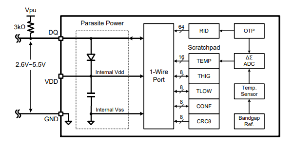 The GX1832 is a fully integrated digital temperature sensor that provides a 12-bit temperature result with a resolution of 0.0625°C and an accuracy of up to ±0.5°C with no calibration.The GX1832 is compatible with the one-wire interface and supports up to 32 devices on a single bus. The GX1832 can be easily used as a two wire digital temperature probe or as a direct replace-mentfor NTC thermistors.