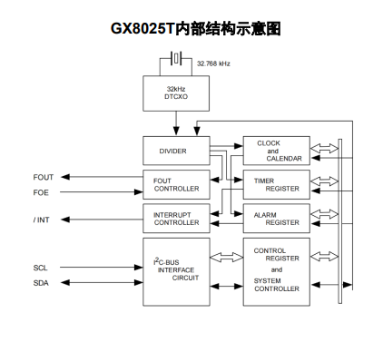 GX8025T是一款内置32.768KHz DTCXO的高精度实时时钟芯片,兼容标准I²C接口。除了可以提供日历功能(年,月,日,星期,小时,分,秒)和时钟计数功能外,该芯片还提供诸如闹钟功能,固定周期计时器,超时中断,32.768KHz时钟输出等附加功能。该芯片采用CMOS工艺以降低芯片功耗,提高电池寿命。