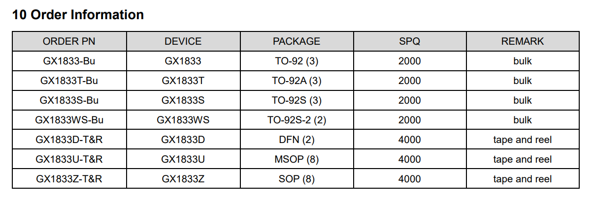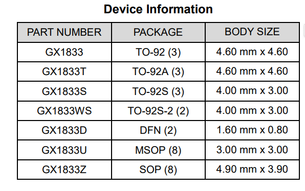 | Standby Power Consumption | 0.75μA | Package form | TO92,TO92S,TO92S-2,DFN2,SOT23-3 |