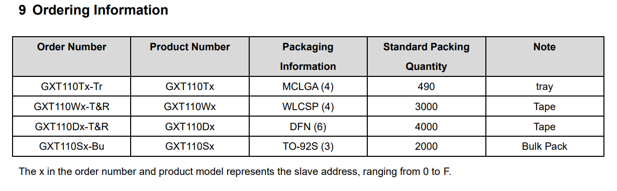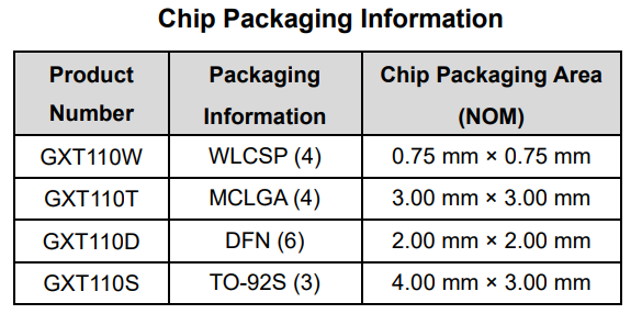 GXT110 supports two packaging forms: WLCSP-4 and MCLGA-4. The former is extremely small and suitable for applications with extremely limited space; the latter can conduct heat rapidly and is designed for measuring the surface temperature of human skin.