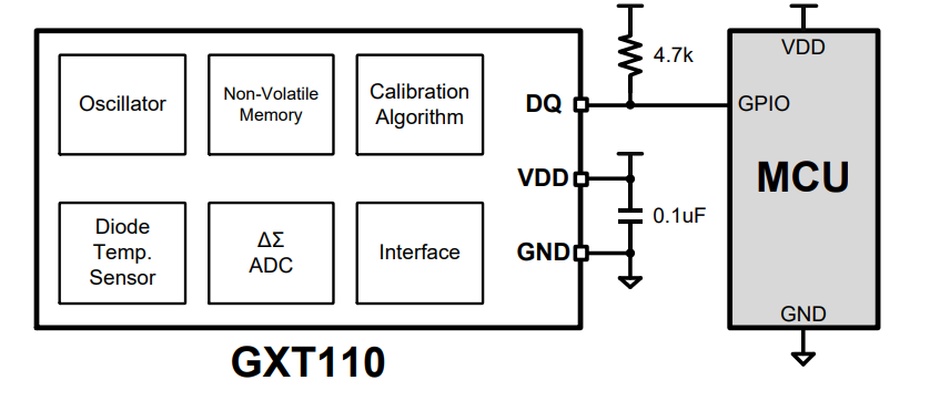 GXT110 is a high-precision digital temperature sensor optimized for human body temperature measurement. It can achieve 16-bit (0.0078125°C) temperature output without any external temperature sensing unit, and has a temperature measurement error of less than ±0.1°C in the range of 30℃~45℃.
