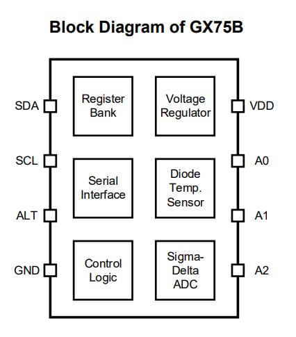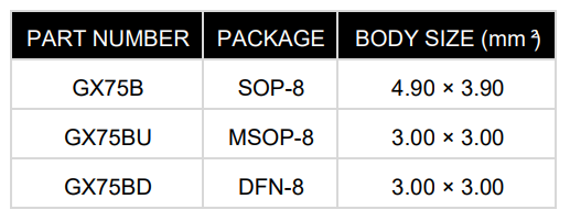 GX75B is a fully integrated digital temperature sensor that can operate at low voltage (1.8V) and has pins and registers fully compatible with mainstream x75 models. It can be used for temperature measurement in applications such as communication, computers, consumer electronics, environmental, industrial, and instrumentation.