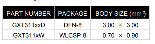 | GXT311BND-T&R | GXT311BND | DFN-8 | 4000 | Tape & Reel |