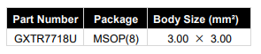 | GXTR7718BU-T&R | GXTR7718BU | MSOP-8 | 4000 | Tape & Reel |