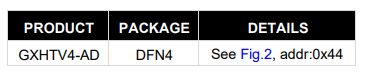| GXHTV4-AD-R2-T&R | GXHTV4-AD | DFN-4 | 2000 | Addr:0x44, Tape & Reel |