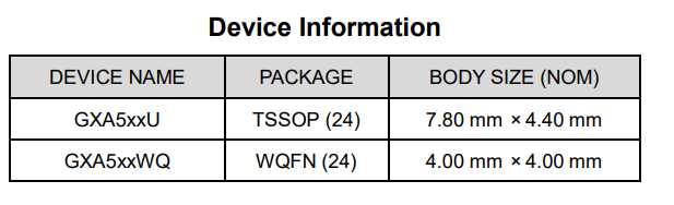 | GXA539WQ-T&R | GXA539WQ | WQFN (24) | 4000 | Tape&Reel |