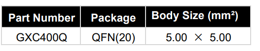 | GXC400Q-T&R | GXC400Q | QFN-20 | 4000 | Tape & Reel |
