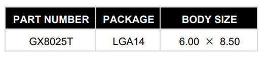| GX8025T-T&R | GX8025T | LGA14 | Undetermined | Sample |