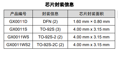 GX0011采用DFN-2和TO-92S封装,可以直接替代NTC热敏电阻,并且使用更为简单,无需任何系统校准或软硬件补偿即可实现全温范围小于±1℃的测温误差,并且具有良好的一致性。