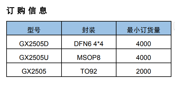 • 8 位家族码用于区分芯片是 GX2505