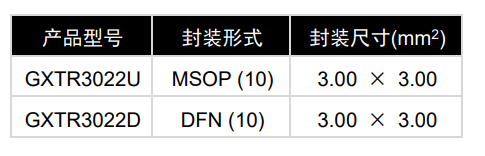 GXTR3022 本地通道和远程通道的测温精度典型值均为 ±1℃,并均提供 0.0625℃的测温分辨率和 -55℃ ~ +150℃的测温范围。GXTR3022 的电源电压范围为2.7V ~ 5.5V,并提供 3.0mm×3.0mm 的 10 Pin MSOP和 3.0mm×3.0mm 的 10 Pin DFN 封装,以便集成到各种系统中。