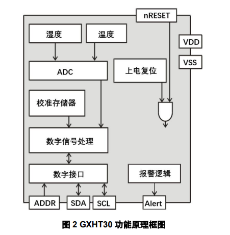 它有两个供用户选择的I²C地址,I²C通信速度高达1MHz,芯片采用小型化DFN封装,外形尺寸2.5mm x 2.5mm,高度为0.9mm,这使得GXHT30可以集成在各种应用场合。此外,2.0V~5.5V的宽供电电压范围使得它可以适应各种供电环境。